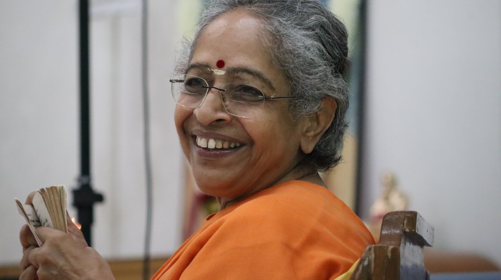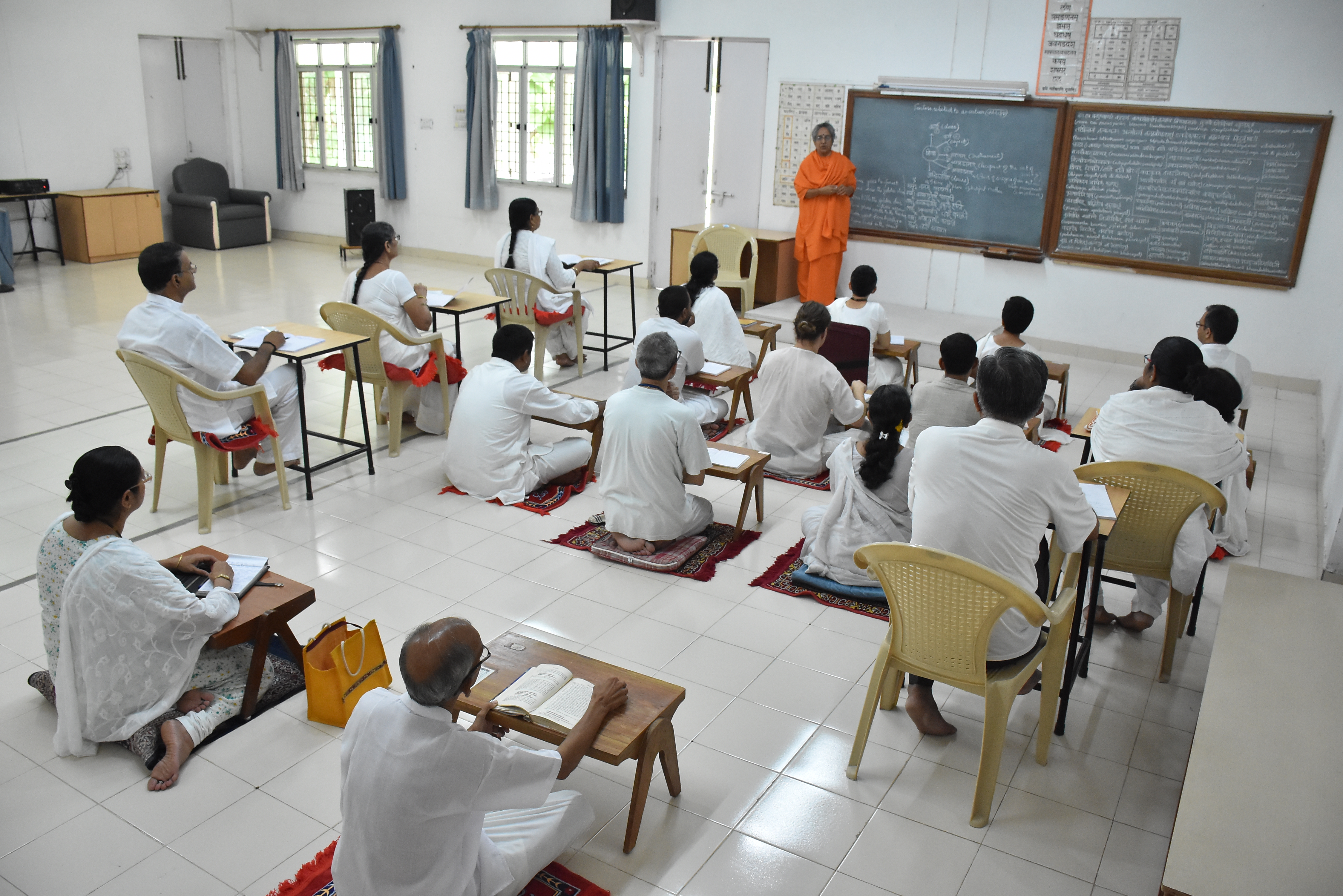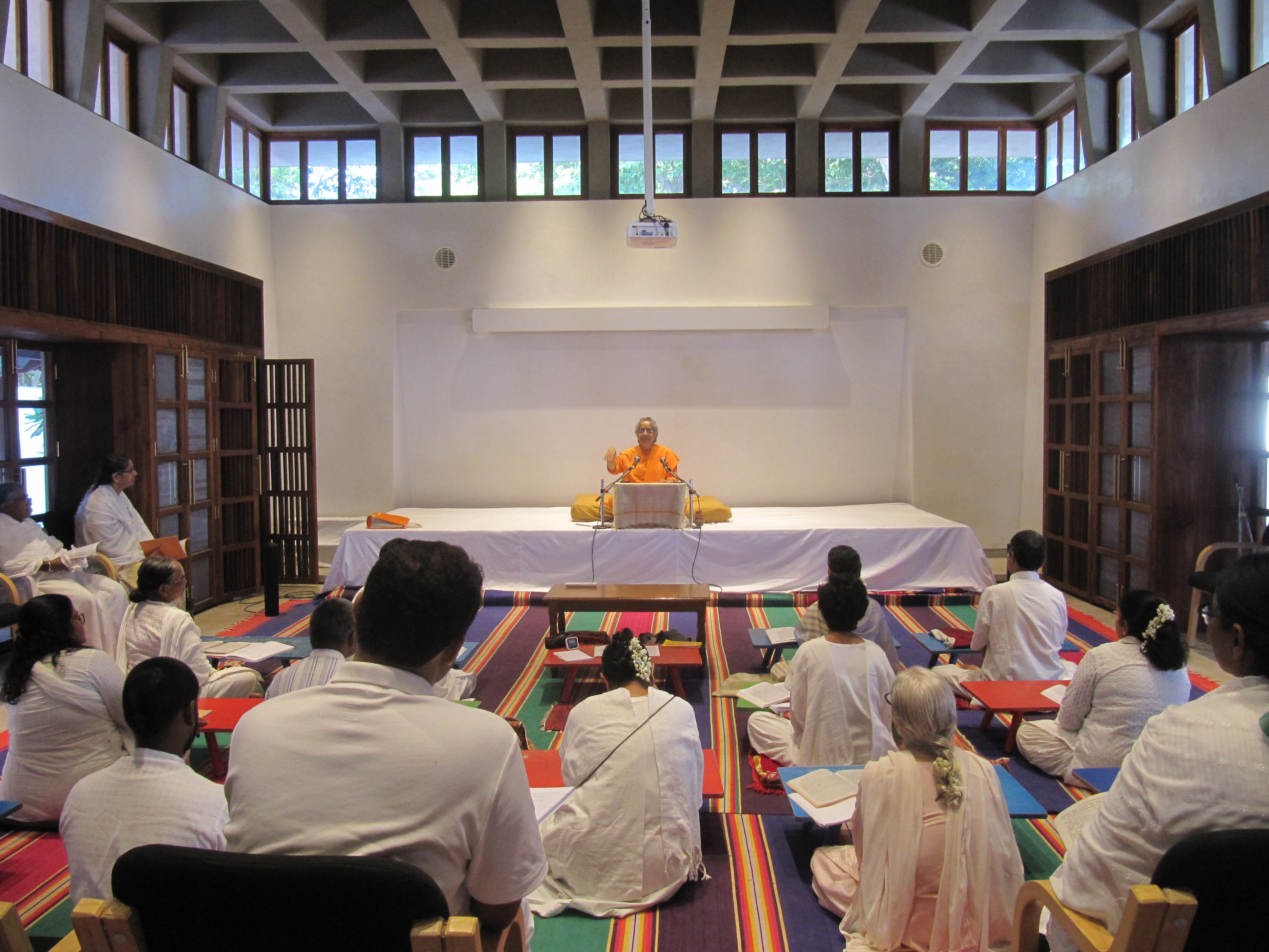 When Pujya Swamiji started the Arsha Vidya Gurukulam and a long-term course in October 1990 in Anaikatti, Coimbatore, she joined as a student of that course. She had the privilege of teaching Sanskrit in her own course. After graduating from that course in 1994, she continued to teach Vedanta and Sanskrit and administer the next course at Arsha Vidya Gurukulam, Anaikatti under the guidance of Pujya Swamiji and Acharya Swami Siddhabodhananda.
